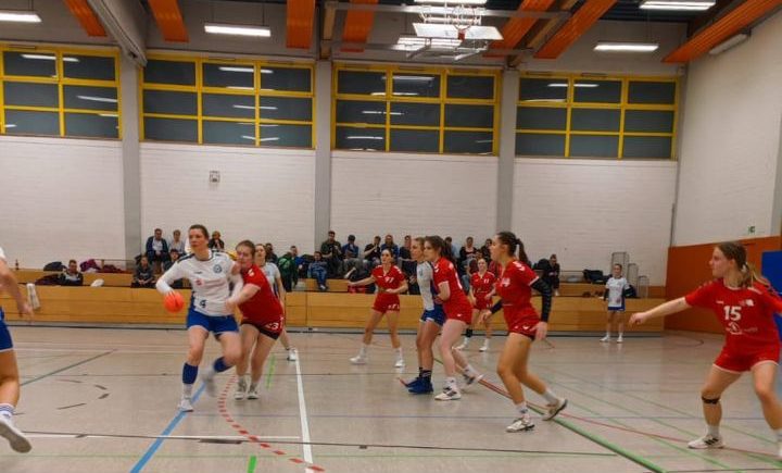 Das Spiel startete also auf Augenhöhe, und es dauerte nicht lange, bis wir richtig ins Spiel fanden und uns mit einem kleinen Puffer absetzen konnten. Langsam aber sicher schlichen sich jedoch technische Fehler in unser Spiel ein, und der Ball war wie eine heiße Kartoffel: Fehlpässe, Ballverluste oder vertippte Bälle. Als würde das nicht schon ausreichen, ließ langsam auch die Chancenverwertung zu wünschen übrig. Das Einzige, was uns im Spiel und unsere kleine Führung aufrechterhielt, war unsere Abwehrarbeit, die auch unsere Gastgeberinnen vor Herausforderungen stellte. Schließlich gab es Phasen während der ersten Halbzeit, in denen wir drei oder vier Minuten lang keinen Punkt auf die Anzeigetafel setzen konnten. Glücklicherweise traf das nicht nur auf uns zu, sondern auch auf die Damen von Blau-Weiß, die von ihrem Rückstand ziemlich überrascht wurden. Leider kann man mit dieser Menge an Fehlern und unbelohnten guten Aktionen keine Spiele gewinnen, weshalb die Gastgeberinnen zur Pause auf ein Tor an uns herankamen (14:13). Dass der eigene Torhüter nur 13 Mal hinter sich greifen musste, hört sich doch recht gut an. Das wird allerdings von den eigenen 14 Toren wieder geschmälert.
