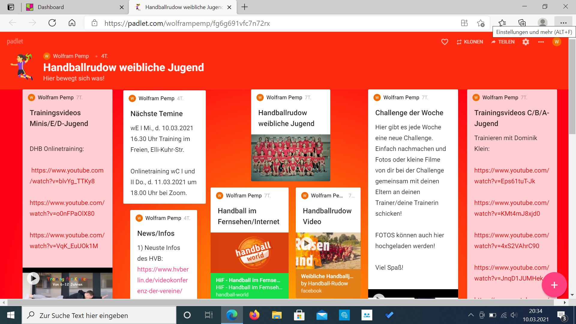 Neuerdings gibt es nun auch Infos für alle Rudower Handballmädels über ein eigenes Padlet (siehe Bild).