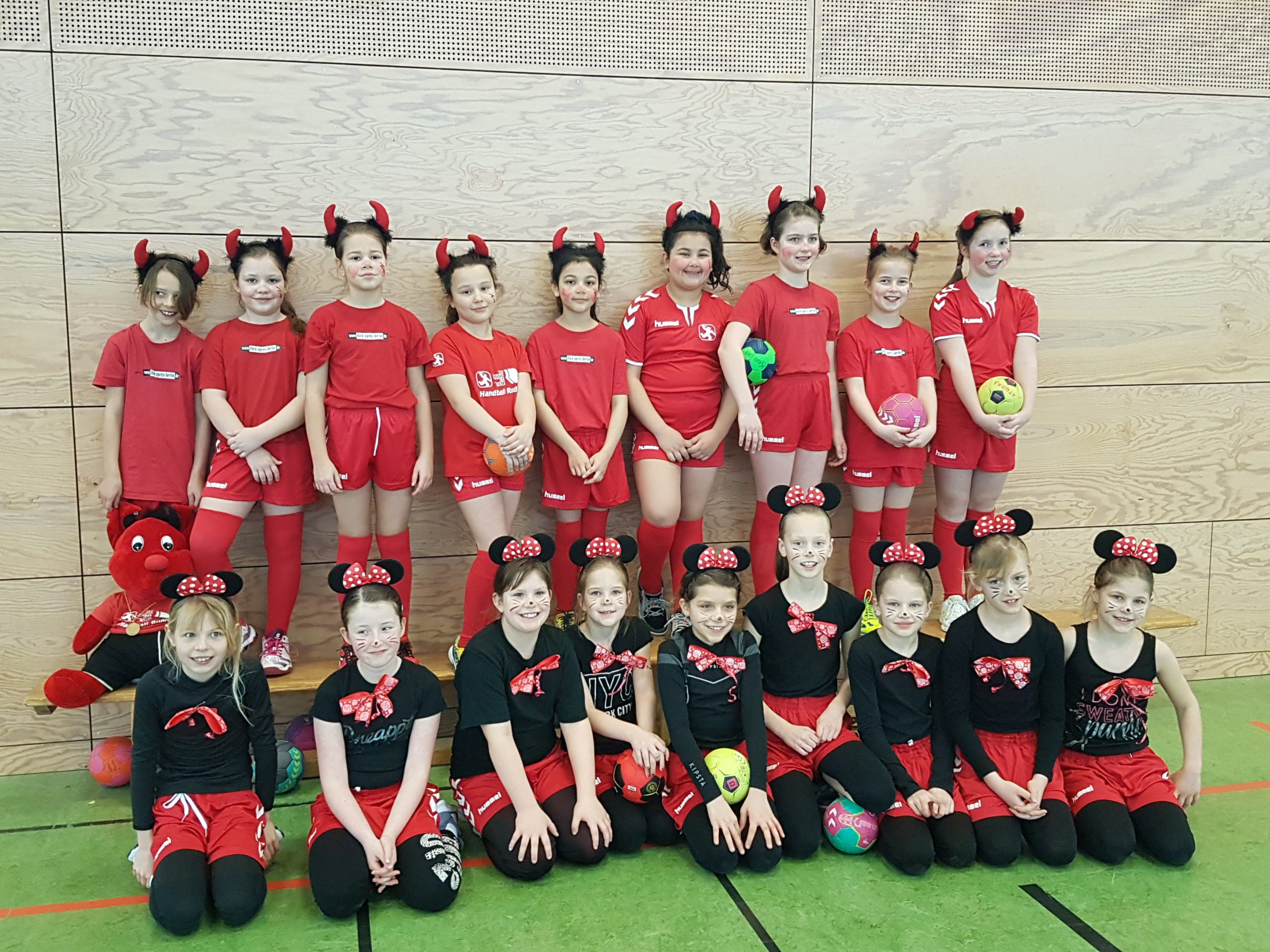 Als Teufel und Minimäuse verkleidet spielten die Mannschaften der WE2 und WE3 beim Faschingsturnier der Köpenicker Runde mit. Einige besondere Regeln, z.B. Einwürfe mit dem Rücken zum Feld und Torwartwechsel nach jedem Tor, sorgten für Abwechslung und zusätzlichen Spaß.
