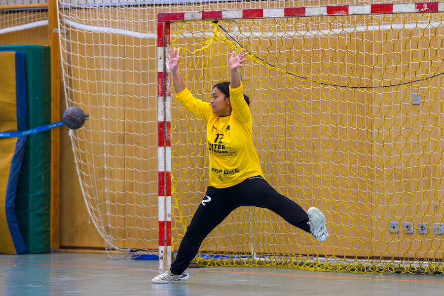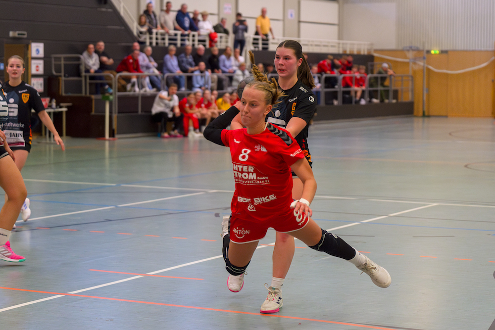 Zurück zum Spiel: Beide Torfrauen zeigten Top-Leistungen, es vielen wenig Tore. Schwerin dominierte unsere Mädels und konnte sich nach und nach deutlich absetzen. Zwei Treffer aus dem Rückraum hielten uns zunächst noch im Spiel (2:4 nach 7:37 Minuten), die Gäste bauten diese Führung aber deutlich aus. Unser Timeout nach zwölf Minuten verpuffte und Schwerin zog über 4:10 und 6:12 nach 21 Minuten davon. Der Favorit war klar im Vorteil! So manch ein Zuschauer dachte nun vermutlich schon, dieses Spiel sei gelaufen, zu dominant wirkten die Mädels aus dem Norden. Als ständiger Beobachter der Ladies spürte man dennoch Hoffnung, da dieser Mannschaft immer ALLES zuzutrauen ist! Die Zuschauer in der Halle halfen unseren Mädels nun und unterstützen weiterhin lautstark. Dieses zeigte Wirkung und unsere Ladies besannen sich auf ihren Kampfgeist. So kamen wir bis zur Pause noch auf 9:12 heran.